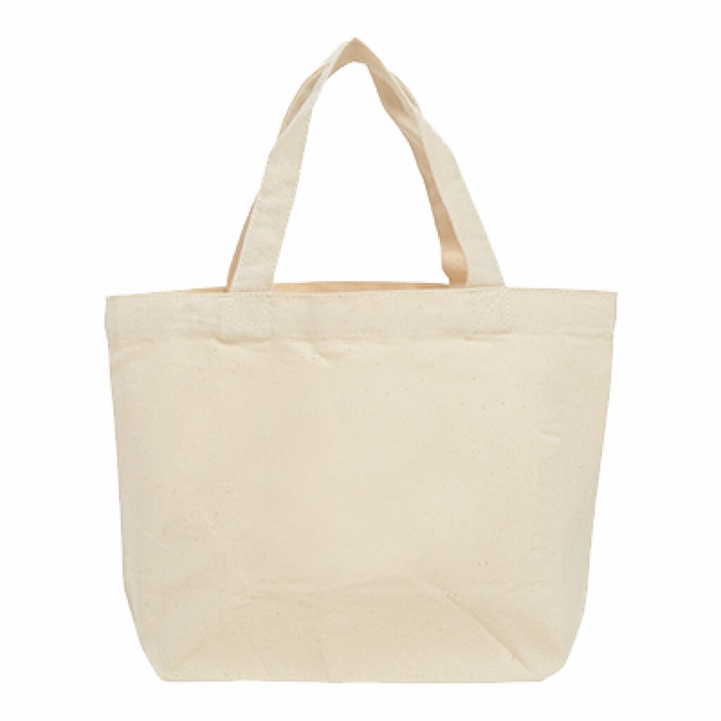 ランチバッグやお出かけ用のエコバッグとして大活躍な12ozキャンバストートバッグです。(500mlのペットボトルやお弁当箱等が入るサイズです。)